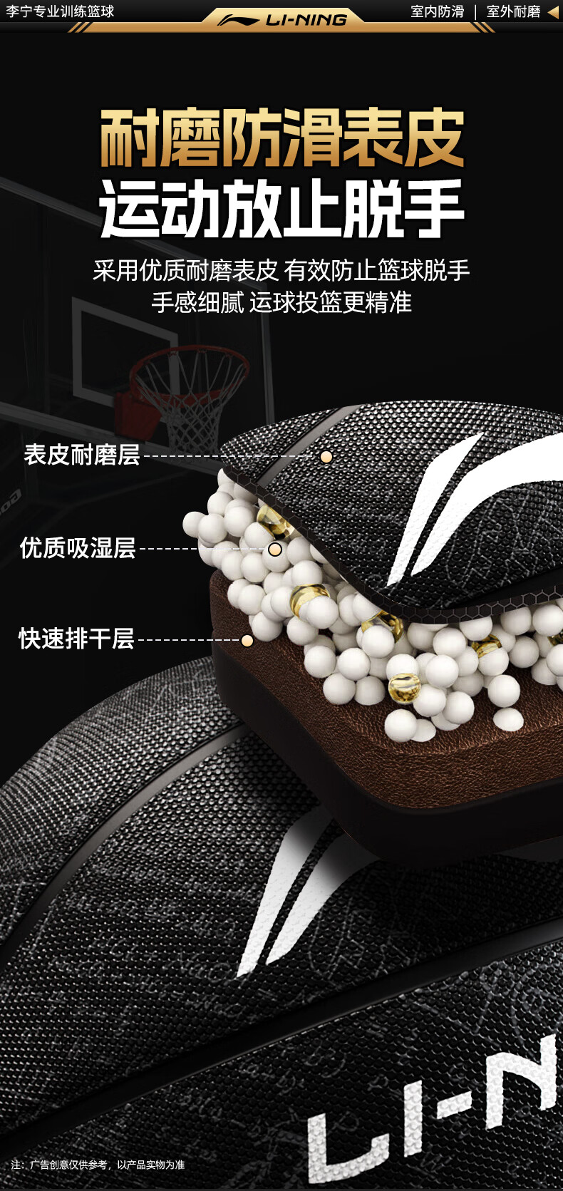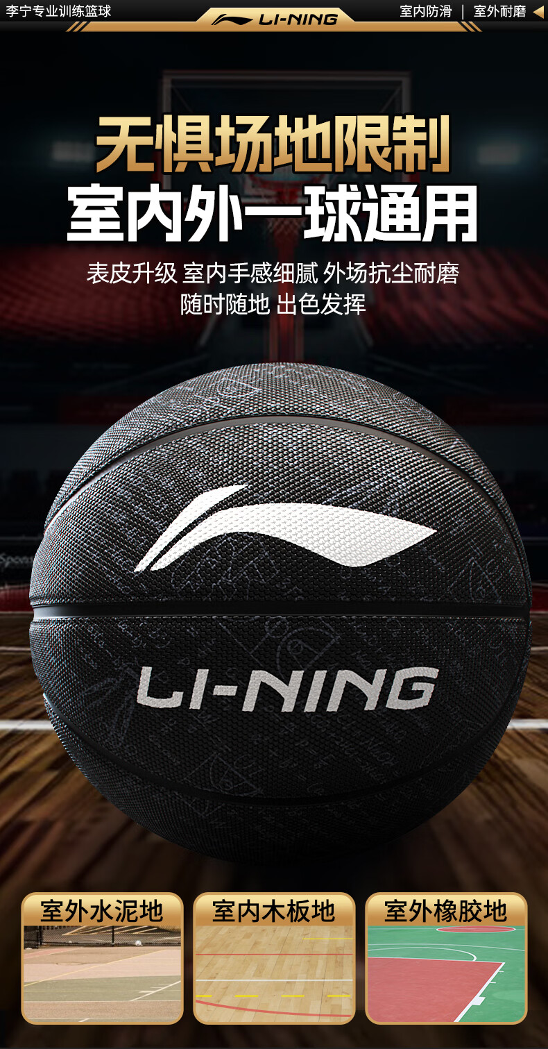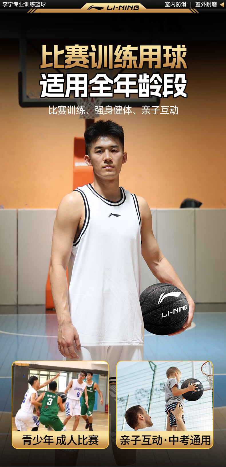 李宁篮球7号青少年学生成人中考比赛训练室内外耐磨防滑七号蓝球礼物