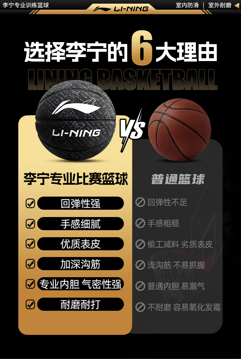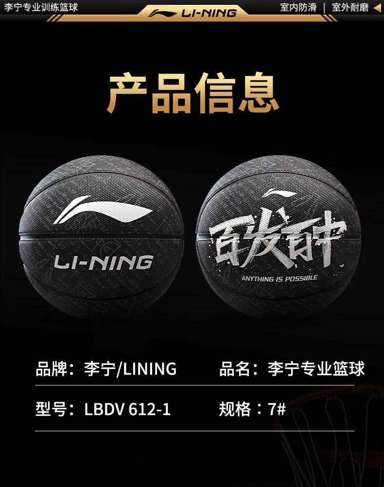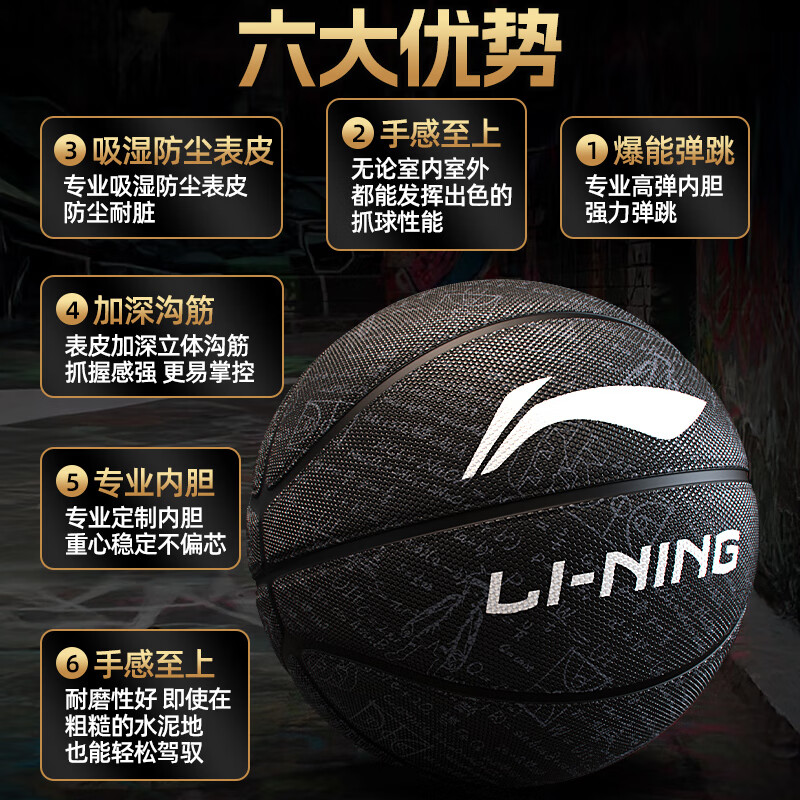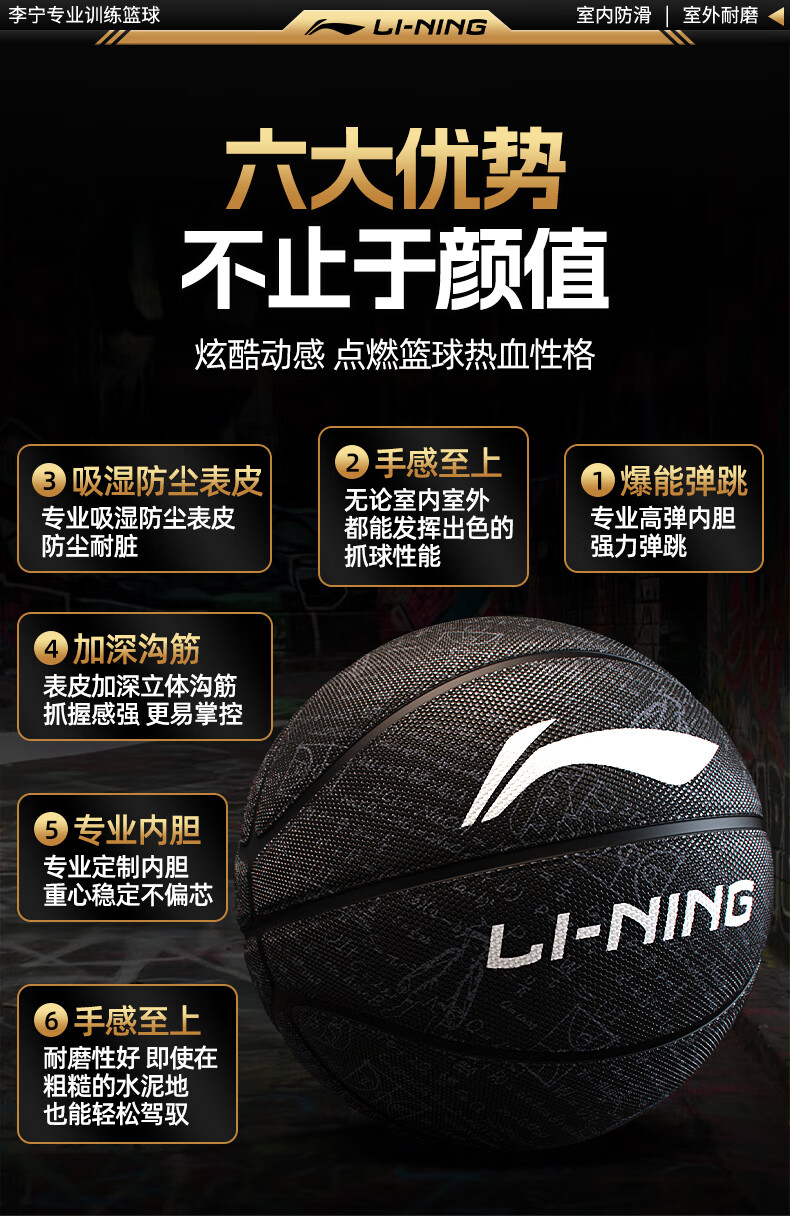 李宁篮球7号青少年学生成人中考比赛训练室内外耐磨防滑七号蓝球礼物