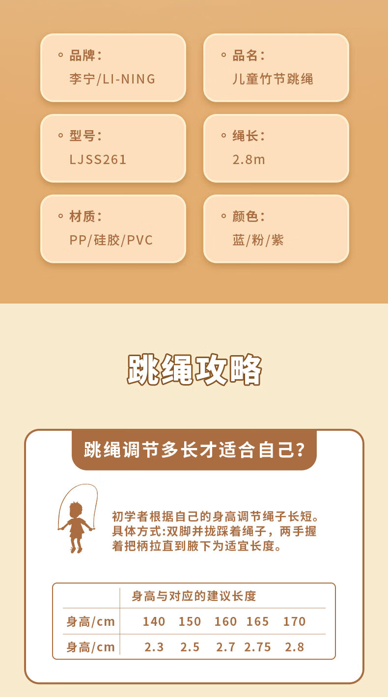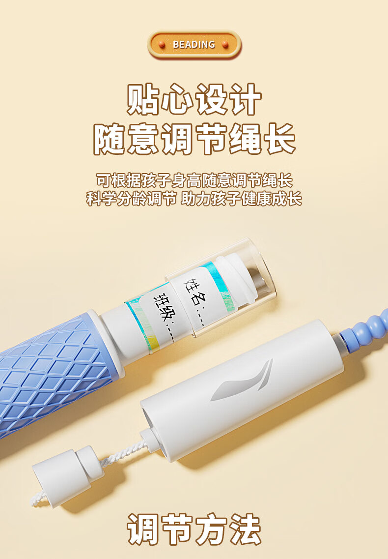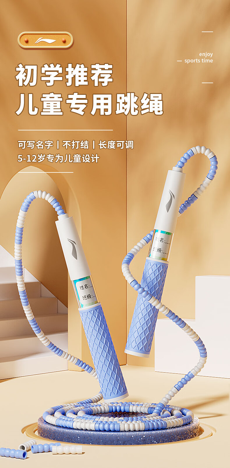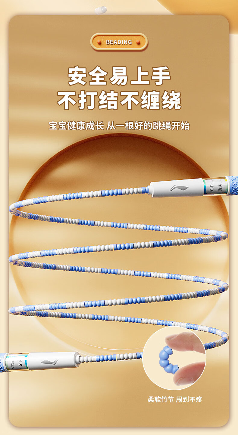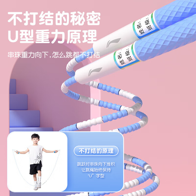 李宁(LI-NING)竹节跳绳儿童小学生专用一二年级幼儿园宝宝初学大班不打结绳子
