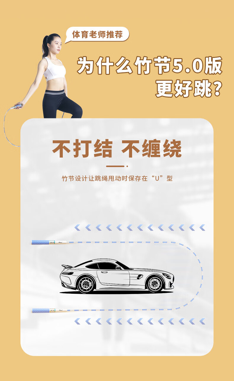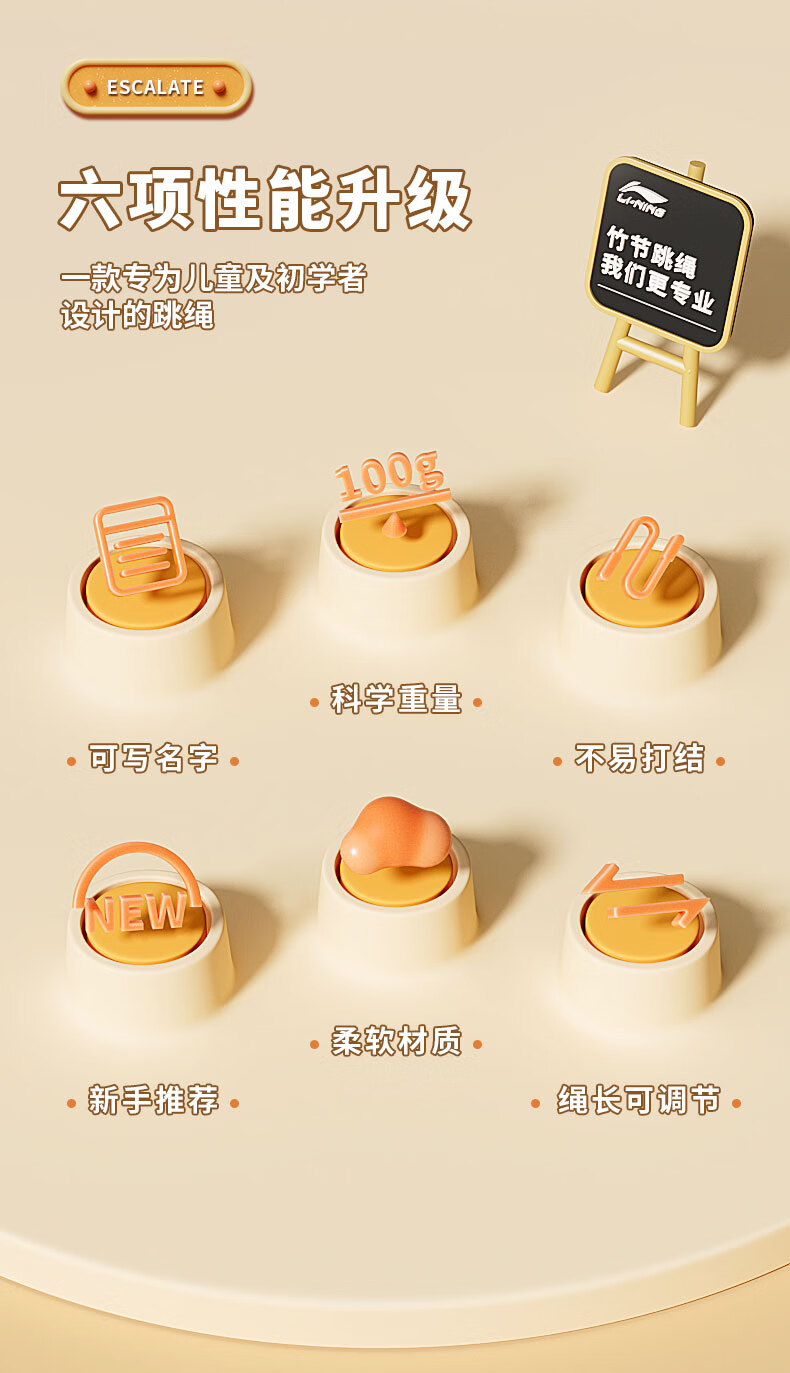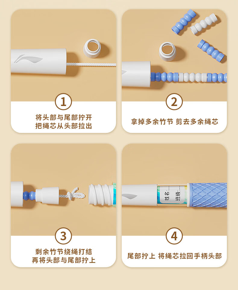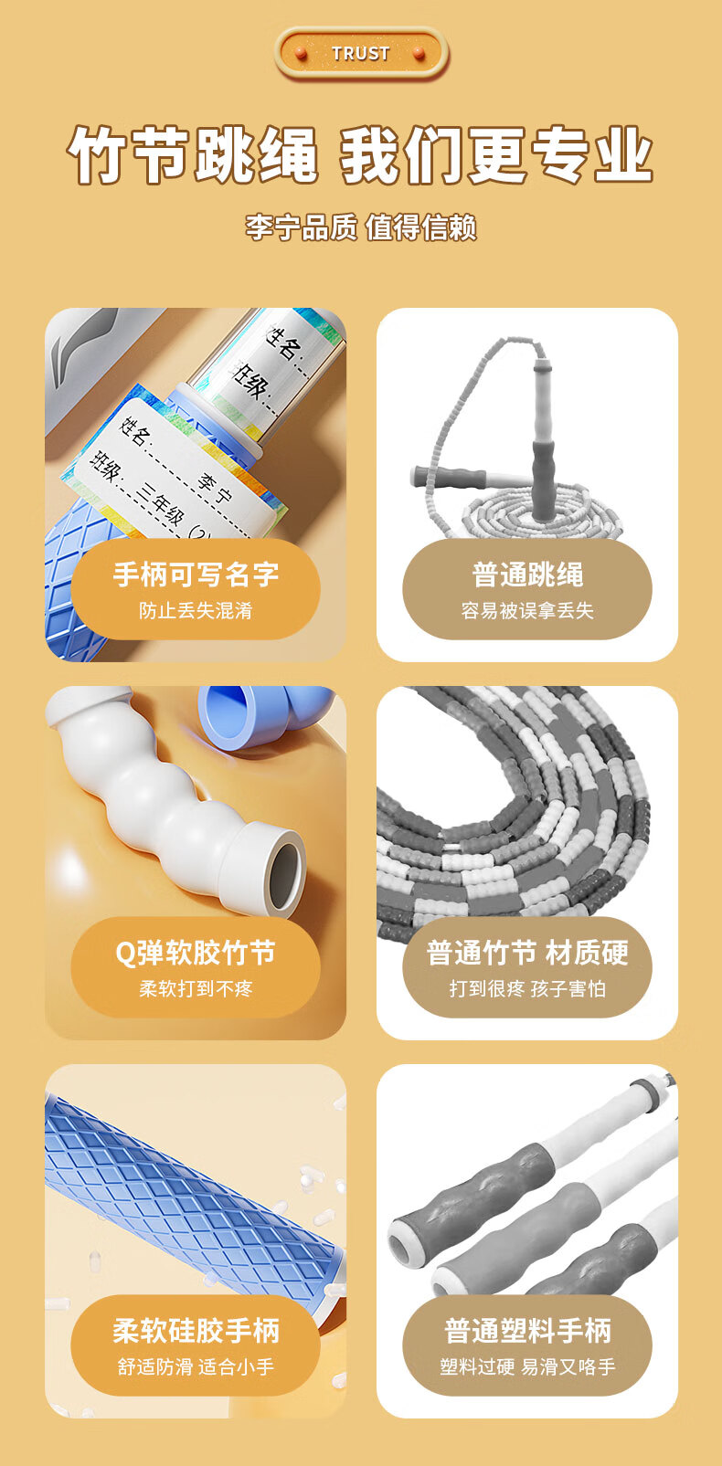 李宁(LI-NING)竹节跳绳儿童小学生专用一二年级幼儿园宝宝初学大班不打结绳子