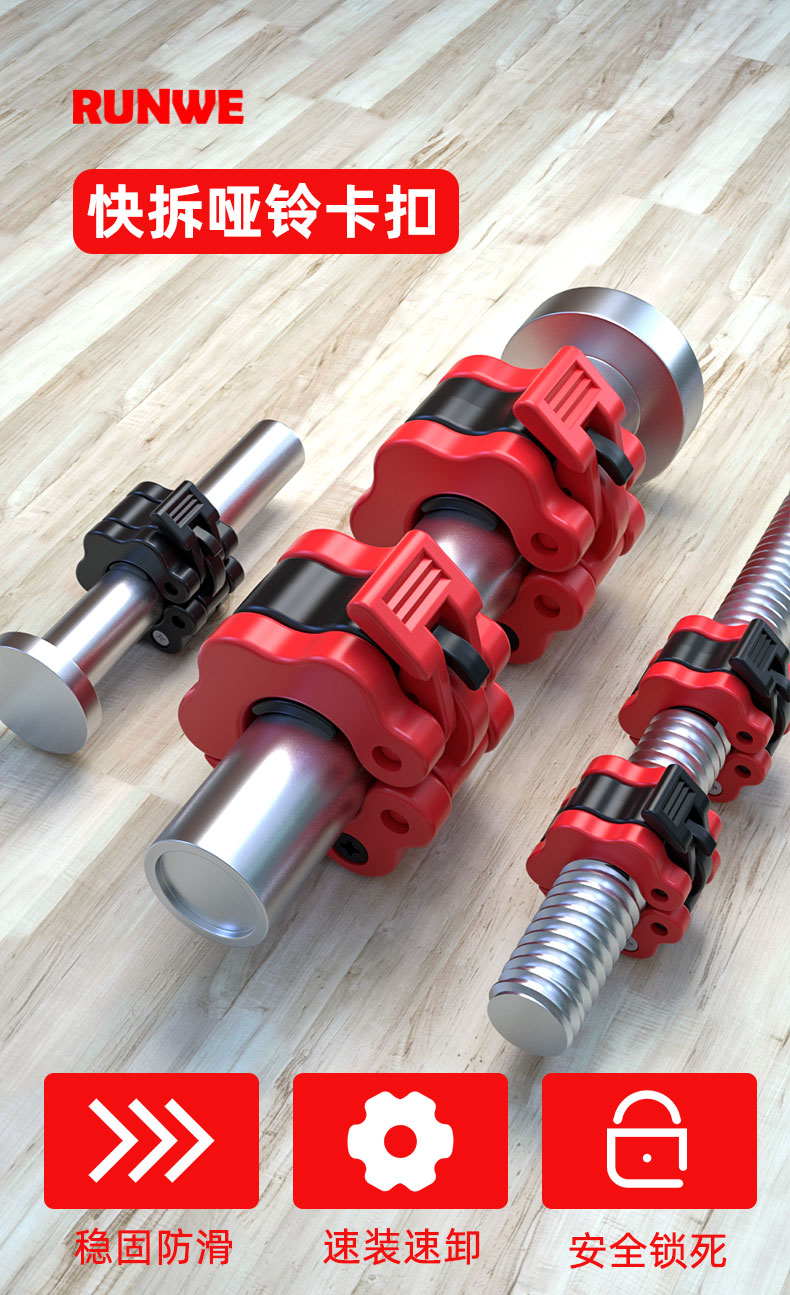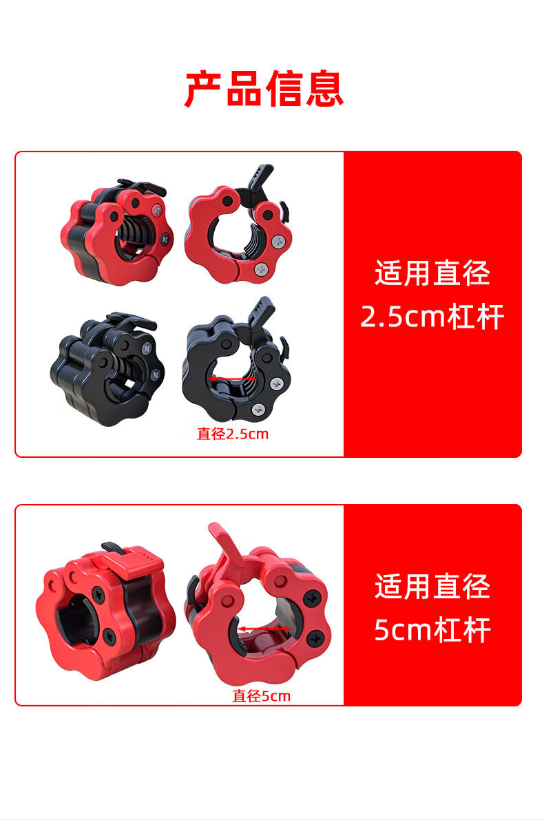 朗威哑铃卡扣固定器螺丝配件专用快拆卡簧螺母2.5cm奥杆5CM塑料 2.5cm直径-纯黑色(2只)