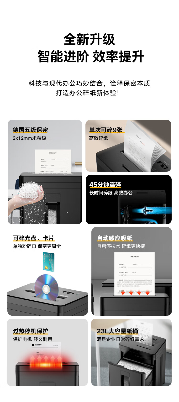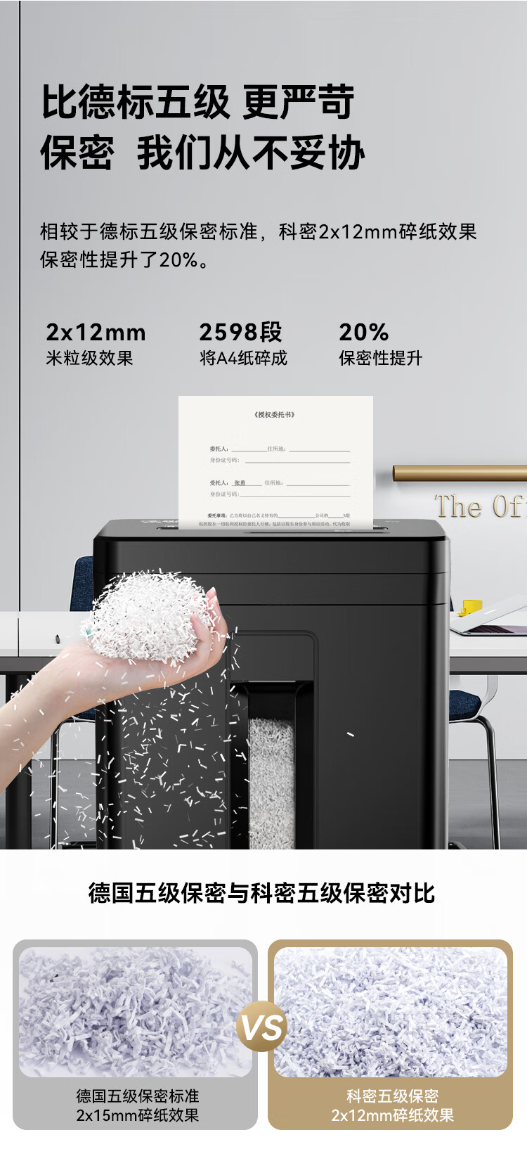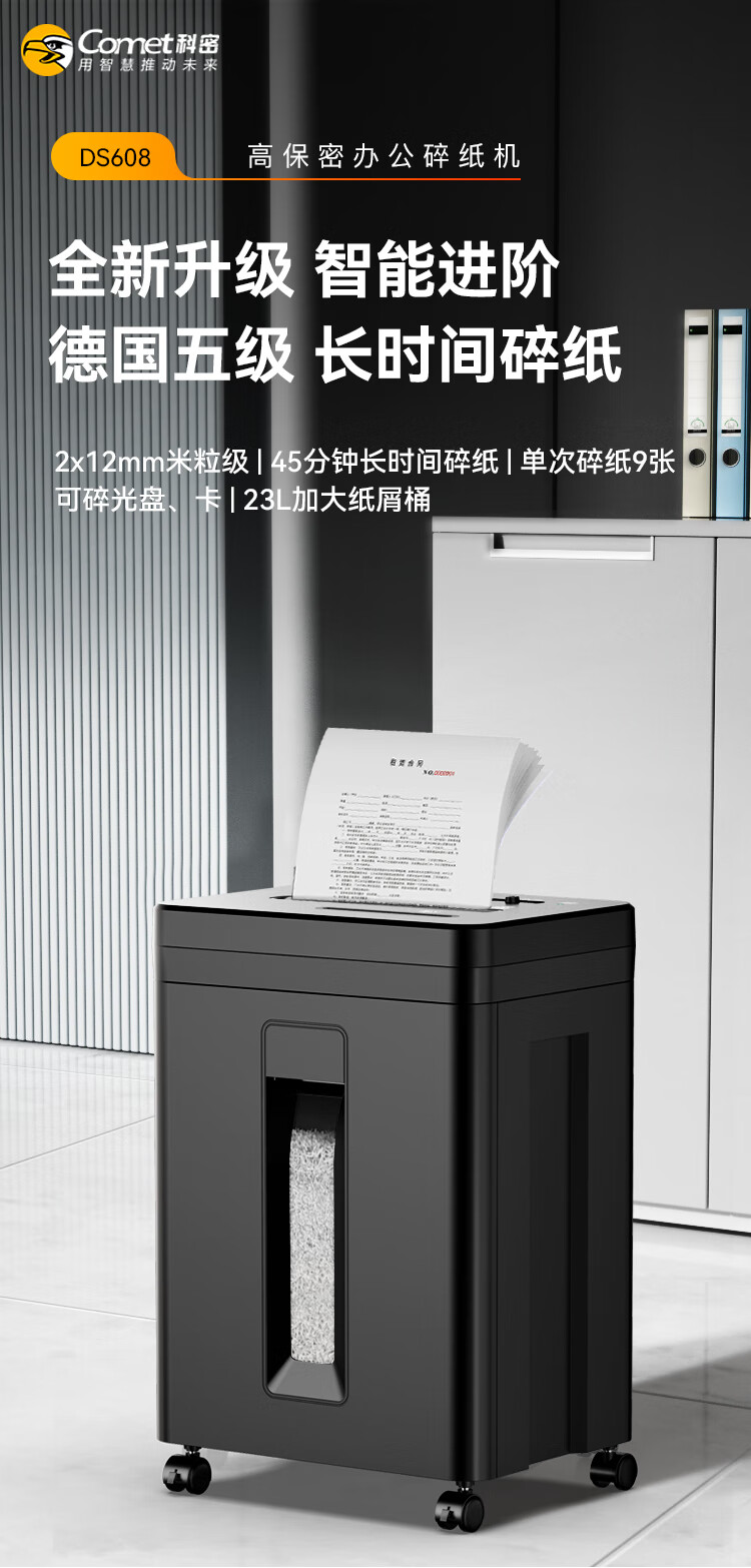 科密9张连碎45分钟碎光盘碎纸机办公室专用大型商务办公家用文件粉碎机(2*12mm 23L 5级保密)